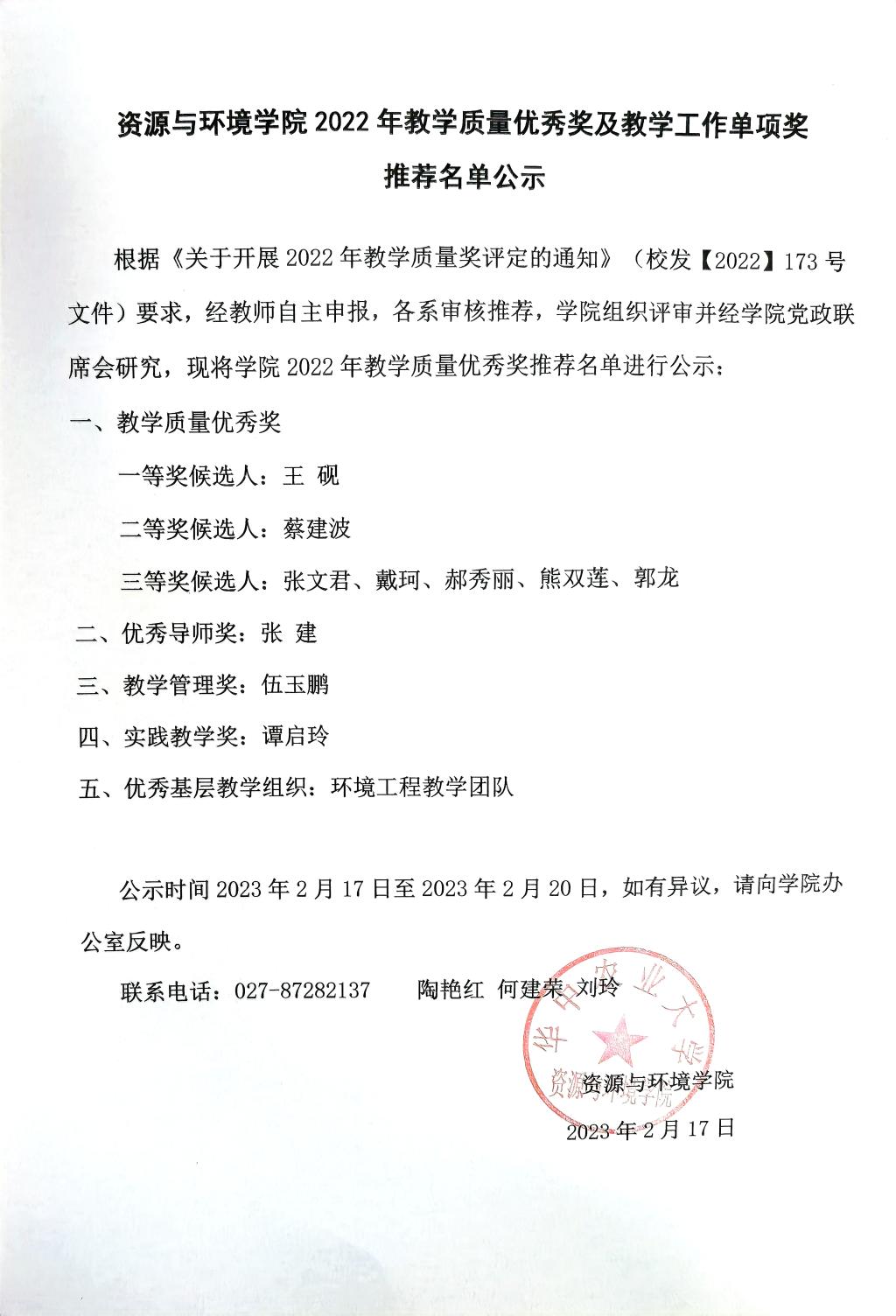 nba88看球 2022年教学质量优秀奖及教学工作单项奖推荐名单公示