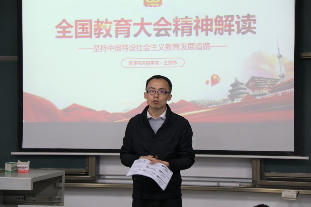 “教师是人类最古老也是最伟大、最神圣的职业之一,广大教师就是打造中华民族梦之队的筑梦人。”第一党支部组织委员范海燕通过引用习总书记的话来表达她对教师职业的尊敬。王景伟则从教育的角度浅谈习总书记在全国代表大会中的重要讲话。大会中强调,教育事业事关国家发展,民族未来,只有坚持立德树人,才能让党和国家的事业兴旺发达。对此,他用简单通俗的语言向大家阐释国家积极推动教育事业的意义:“华农校园里的教职工都是育人的人,校园文化是育人的环境,如果我们想要推动教育事业的发展,就一定要把立德树人的思想融入到校园的各个环节中去。”
