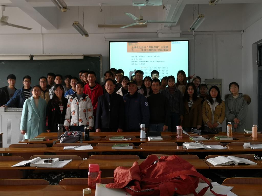 2018年11月19日下午,在第二教学楼402教室的土壤农化分析课堂,来自土壤肥料推广工作一线的正高职高级农艺师——湖北省浠水县农业技术推广中心副主任、土肥站站长汪航受邀为农业资源与环境1601和1604班的学生做了“投身农业,大有可为,大有作为”的讲座。任课教师耿明建主持了课堂,教学巡视员何绍江教授全程参加,讲座还吸引了nba88看球 部分研究生旁听。