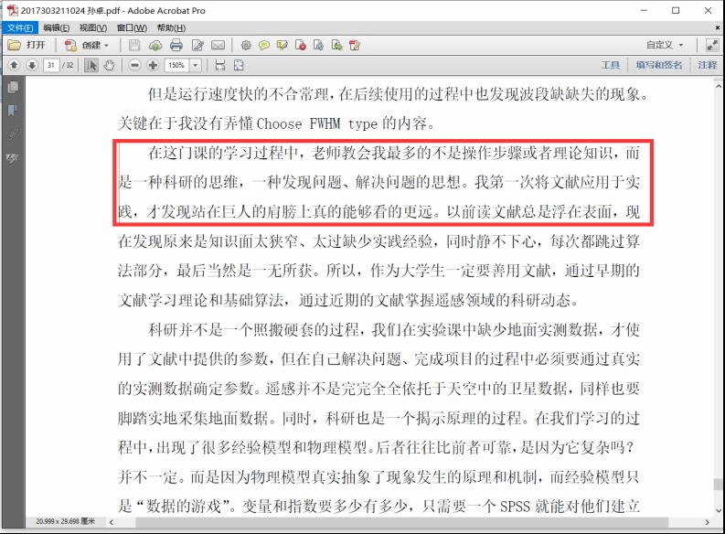 3.强化课后学习环节:定量遥感专业性强,仅仅靠有限的课程时间学习依然不够,必须推动学生课后学习和自学,强化课后作业是必要手段。在教学过程中,根据每个章节和进度安排,设计了三次大型的课后自学环节,让学生在线听课后,自主查阅文献,分别撰写小论文,内容包括:遥感技术相关综述;遥感反演中文文献阅读读书笔记;定量遥感英文文献翻译;遥感科学综合报告等。每次作业让学生全部手写,完成后拍照提交,课程学习过程中互动研讨,相互点评和学习。作业过程中,特别强调学生提高总结和独立思维的能力,必须让每个学生课前,课中,课后都要动起来。