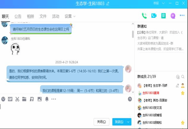 新建课程学习QQ群,按照学校《关于组织好2020年春季学期在线教学等工作的通知》要求,利用QQ群语音+屏幕共享以及腾讯课堂等平台,积极开展在线教学。