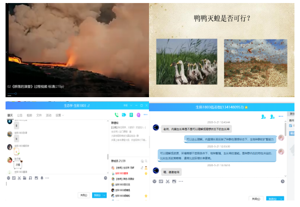 二、优化课堂设计。主要表现在:1.课前提问,请同学对上节课的内容进行回顾,督促学生课后复习;2.加入视频辅助教学,对于自然界中存在的有趣的现象找到生动的视频,请学生利用生态学知识理论解释自然现象,有助于激发学生思考,提高对知识的运用;3.课堂中设计小的思考题,加强与学生互动;4.将时事融入到生态学的课程中,如在讲到种群爆发时,加入运用生态学理论解释“东非蝗灾”的起源及生态治理对策;在讲到种群数量动态时,加入“新冠肺炎”病毒的发生与扩散模型。5.根据云课堂特点随时对学生提出的问题进行答疑。