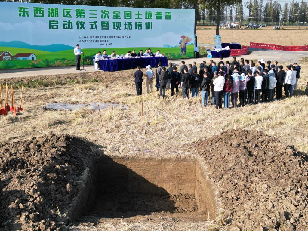 (通讯员 吴刚 )11月7日下午,由东西湖区第三次全国土壤普查领导小组办公室主办,辛安渡街道办事处承办的东西湖区第三次全国土壤普查启动仪式暨现场培训在辛安渡举行。湖北省三普办专职副主任柯建国、我校党委常委、副校长郭刚奇、武汉市农业农村局党组书记、局长王玉珍以及湖北省三普办外业专家组组长王天巍、武鄂片区负责人陈家赢等出席启动仪式。会议由东西湖区农业农村局党组书记、局长高忠主持,外业采样人员、东西湖区农业农村局三普工作技术人员及区街两级一线质控人员等参与此次启动推进仪式及培训。