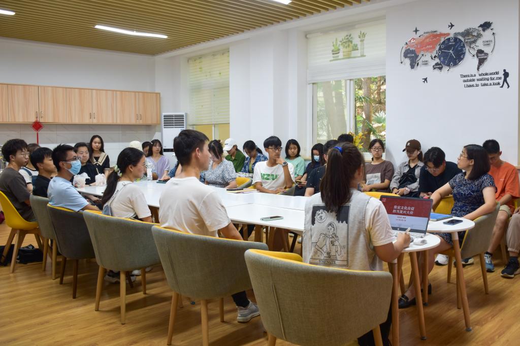 首先,刘名茗从习近平总书记写给南京大学留学归国青年学者的回信谈起,结合自身在美国加州大学欧文分校的访学经验,带领同学们从不一样的方面谈文化自信。刘名茗教授说到:“坚定文化自信与出国留学看似是矛盾的,但其实不然。坚定文化自信是对我们自己有自信,但也要意识到我们自身的不足,当代中国需要的并不是闭关锁国文化自信,我们出国的目的是学习先进的科技和教育理念,是为了开阔视野,知己知彼,出国留学并不是崇洋媚外,是为了更好的提升自己,留学报国。”