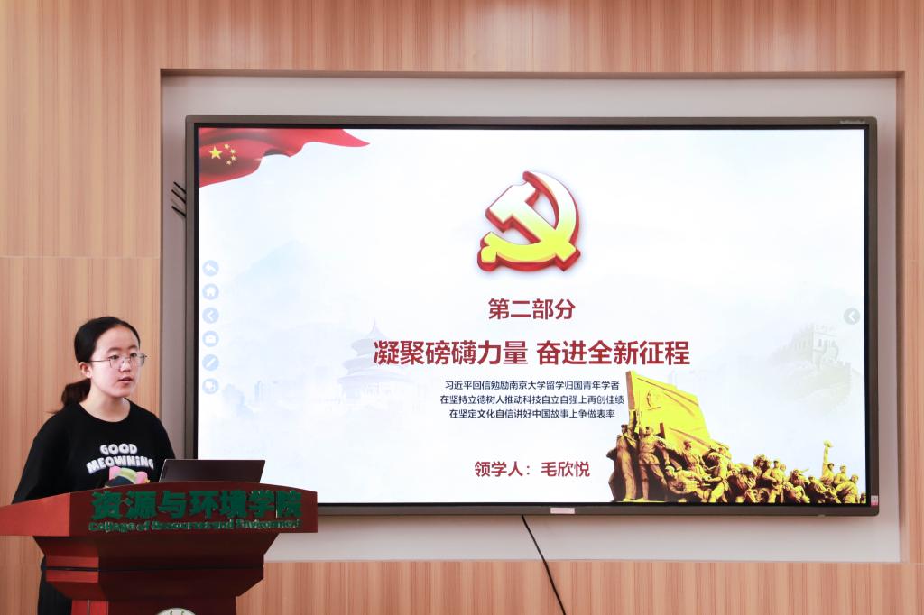 毛欣悦同志以“凝聚磅礴力量,奋进全新征程”为主题,带领大家学习了习近平总书记给南京大学归国留学青年学者的回信,并感悟回信精神。不止是归国留学青年,我们青年人都应努力做到“心系国家事,肩抗国家责”,用奋斗践行强国有我的青春誓言。