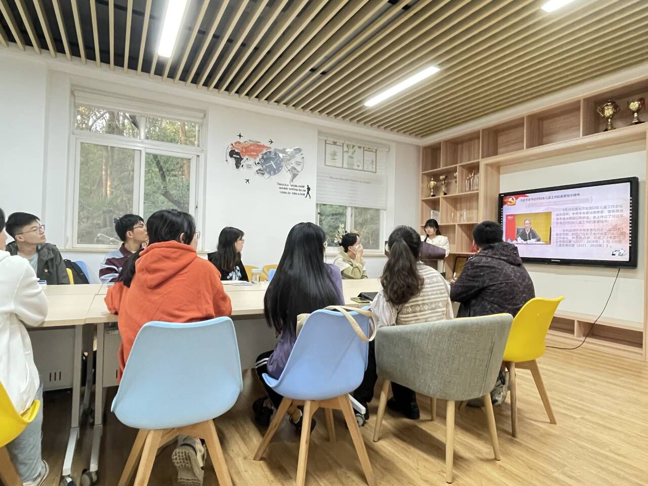 温颖馨同志聚焦妇女儿童工作主题,领学了习近平总书记对妇女儿童工作的重要指示精神。她以第七次全国妇女儿童工作会议的召开为切入点,从“妇女是重要力量,儿童是未来生力军”“坚持男女平等基本国策和儿童优先发展”“支持妇女建功立业,落实儿童优先原则”三个方面带领支部党员进行学习。