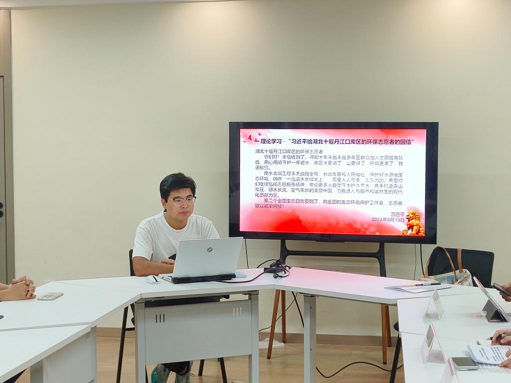 活动第一项,宋静芸同志带领大家首先学习了《习近平给湖北十堰丹江口库区的环保志愿者的回信》,并邀请一位同学进行了朗读。期间,同学们针对此次学习进行了有关生态保护工作方面的探讨,宋静芸同志和徐玲莉老师也进行了相关总结。