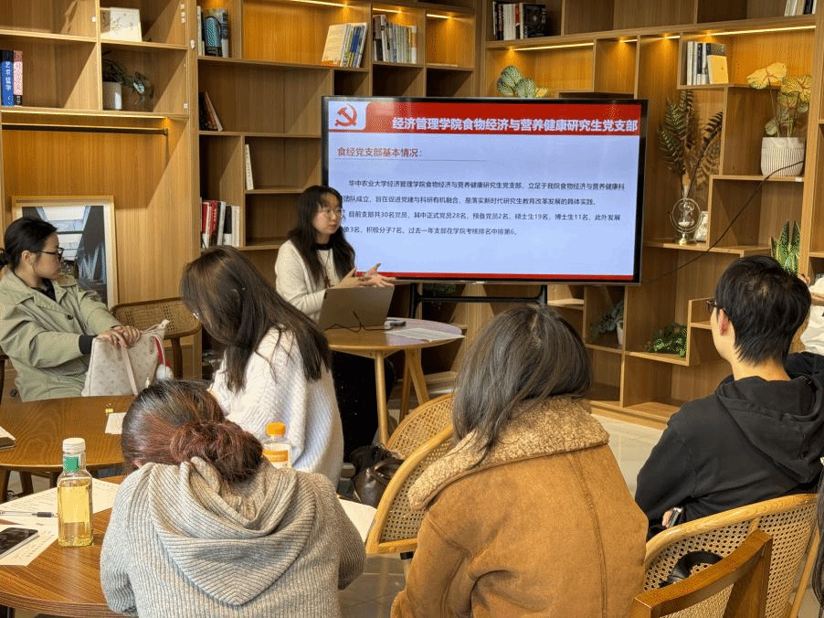 经验分享环节,各党支部书记结合自身工作实践分享经验做法。nba88看球 植物养分管理研究生党支部书记罗欣欣围绕暑期社会实践内容,介绍依托专业优势,强化身份意识,将实践热情转化为日常支部活动参与动力的经验。nba88看球 农产品品质与安全研究生党支部书记朱震昊介绍支部通过每月羽毛球师生融乐活动、每学期专题宣讲活动、每年柑橘品鉴大会等特色活动,让党员在实践中增进交流。经济管理学院博士研究生第一党支部书记万浩然表示,支部工作力求“形式上求活”,通过建立学习小组和充分利用“学习强国”平台,丰富党员日常学习活动。经济管理学院食物经济与营养健康研究生党支部书记闫薇则从组织建设、理论学习、特色活动三个维度,介绍支部“月度支部工作汇报”机制、党小组轮值领学模式、基层调研经验等工作,推动党建与科研双向赋能。