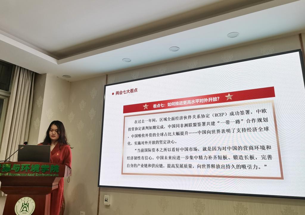 党员方雯向大家传达了2021年3月5日李克强总理两会政府工作报告精神。聚焦两会,工作报告介绍了过去五年我国取得的重大成就,同时也严肃指出了发展面临的困难与挑战,面对新形势新挑战,我们将不忘初心使命,以新姿态主动适应发展新常态,为实现中华民族伟大复兴的中国梦而奋斗。方雯说:“120年前的辛丑年我们签订了丧权辱国的《辛丑条约》,120年后我们凭借自身的实力与美国平等对话,两幅对比图让我热血澎湃,这背后是强大的祖国赋予我们每个人的自信,我们华夏儿女要坚定不移的跟党走,继续奋斗,振兴中华,吾辈是见证者,亦是力行者。”
