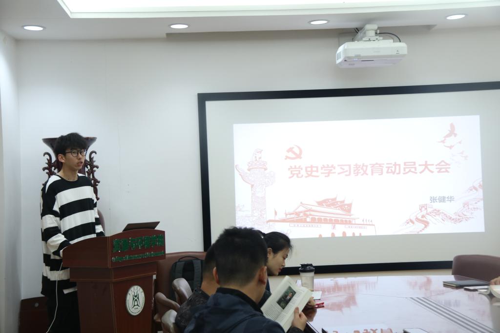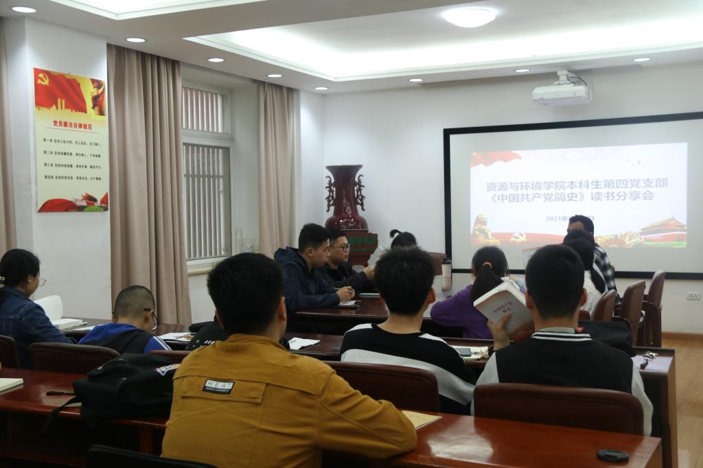 3月30日上午,nba88看球 第四党支部在资环楼101会议室深入学习习近平总书记在党史学习教育动员会上讲话精神暨《中国共产党简史》读书分享会,活动由党支部书记艾力·斯迪克主持。