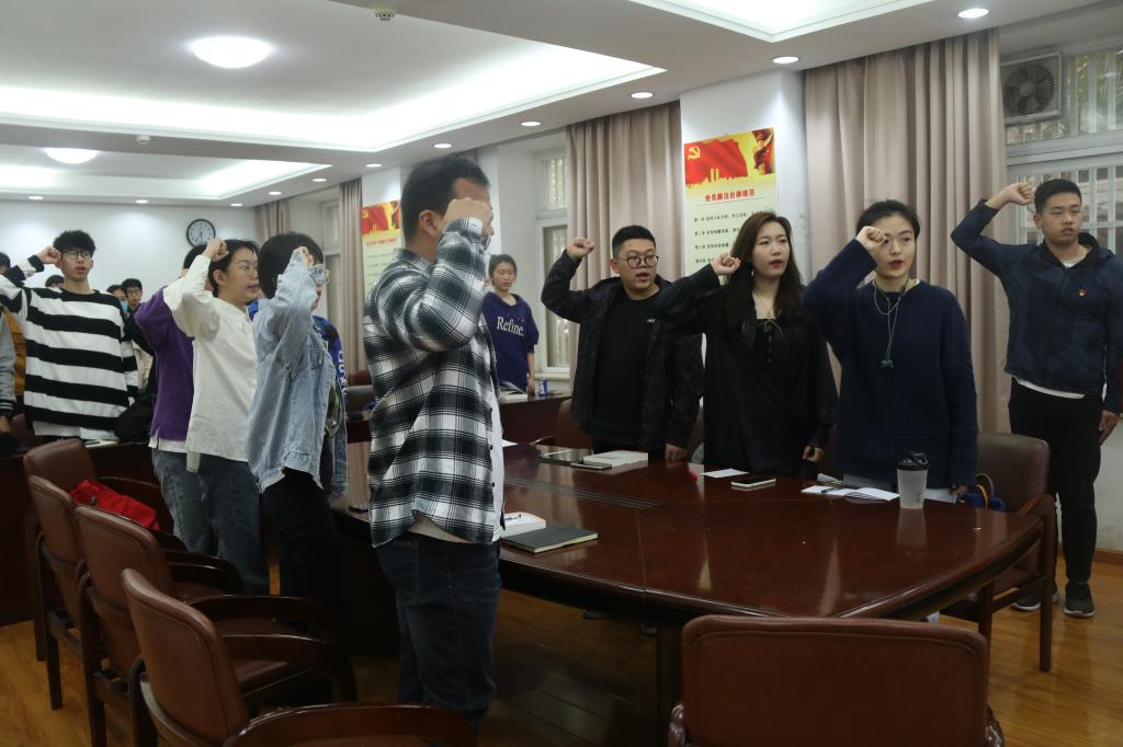 首先,全体支部成员在组织委员谢天同志的带领下重温入党誓词。