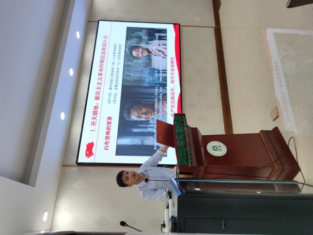随后,党员代表赵倩倩、李素颖分享关于朱德和董必武的党史小故事,学习他们的崇高风范和伟大精神。他们表示,从历史中汲取经验是党长期以来的优良传统和政治优势,党的历史不仅彰显了党的奋斗历程,更承载着中国共产党人的精神,对党史了解越深刻,越能坚定我们的理想信念。