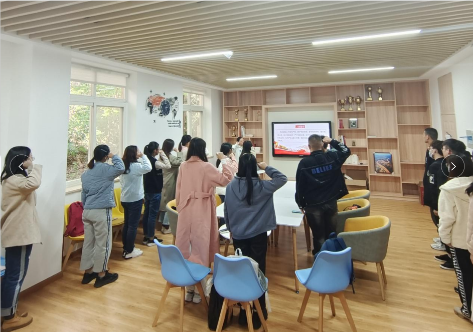 蔡璇带领大家进行理论学习,她首先带领大家学习了习近平总书记在纪念辛亥革命110周年大会上的重要讲话,“辛亥革命110年来的历史启示我们,实现中华民族伟大复兴,必须有领导中国人民前进的坚强力量,这个坚强力量就是中国共产党。”同时,总书记也指出了要实现民族伟大复兴的这个目标需要注意的要点,重申了党的初心和使命。