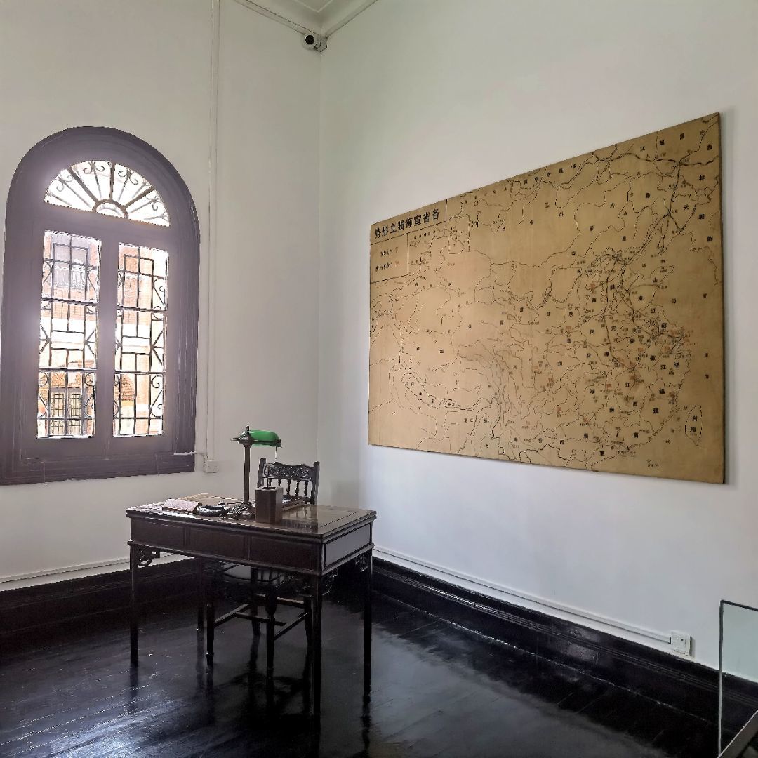 进入纪念馆,首先进入眼帘的便是一幢巍峨的红楼,团队成员们跟随着展馆的指示先后参观了传达员室、外交部、都督会客与会议室等十余间古色古香的房屋,这些房屋里都近乎还原了当时的原貌,书桌椅、电话、台灯等等物件都在向游客们展示着武昌起义时长官们在这里办公的气息。在红楼的中间是一个很大的会堂,会堂的正前方是一面铁血十八星旗和一面五色旗,团队成员站在会堂的门前眺望,仿佛可以看到当年一众长官们整齐地坐在台下,认真地听都督的指令,仿佛可以感受到当时大家想要推翻清王朝统治的决心。团队成员还来到了黎元洪都督的起居室,感受都督生活的气息。虽然当时条件非常艰苦,物质生活非常简陋,可能武器装备也跟不上战斗的需要,但是革命先辈们从来没有放弃,他们时刻不忘自己的使命与革命的紧迫性,凭借着自己的一腔热血和志同道合的同志们相互合作,掀起了这一场伟大的起义。从这些可以感悟到,物质的缺乏并不可怕,只要意志足够坚定,我们就会充满力量,革命的热血会指引着我们向着胜利不断前进!