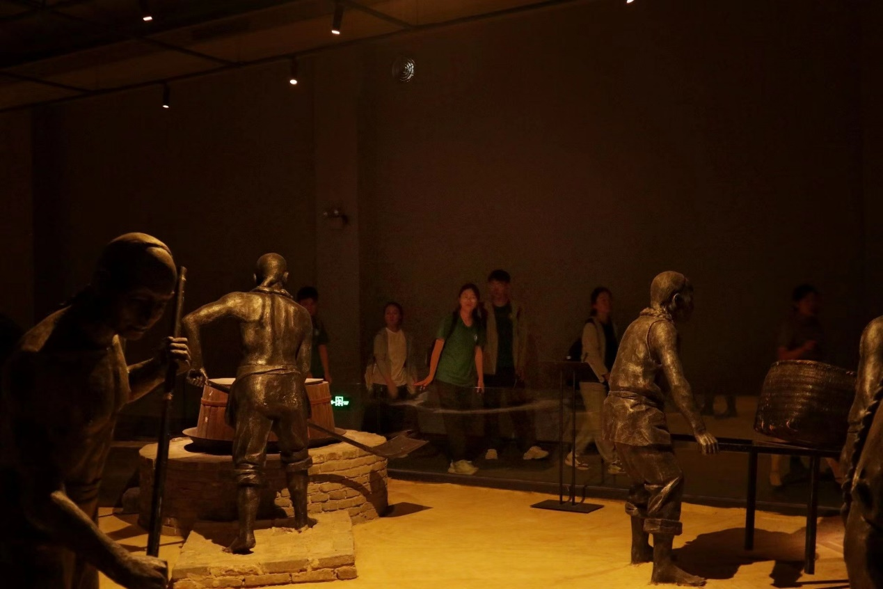队员们正在参观人物制酒模型
