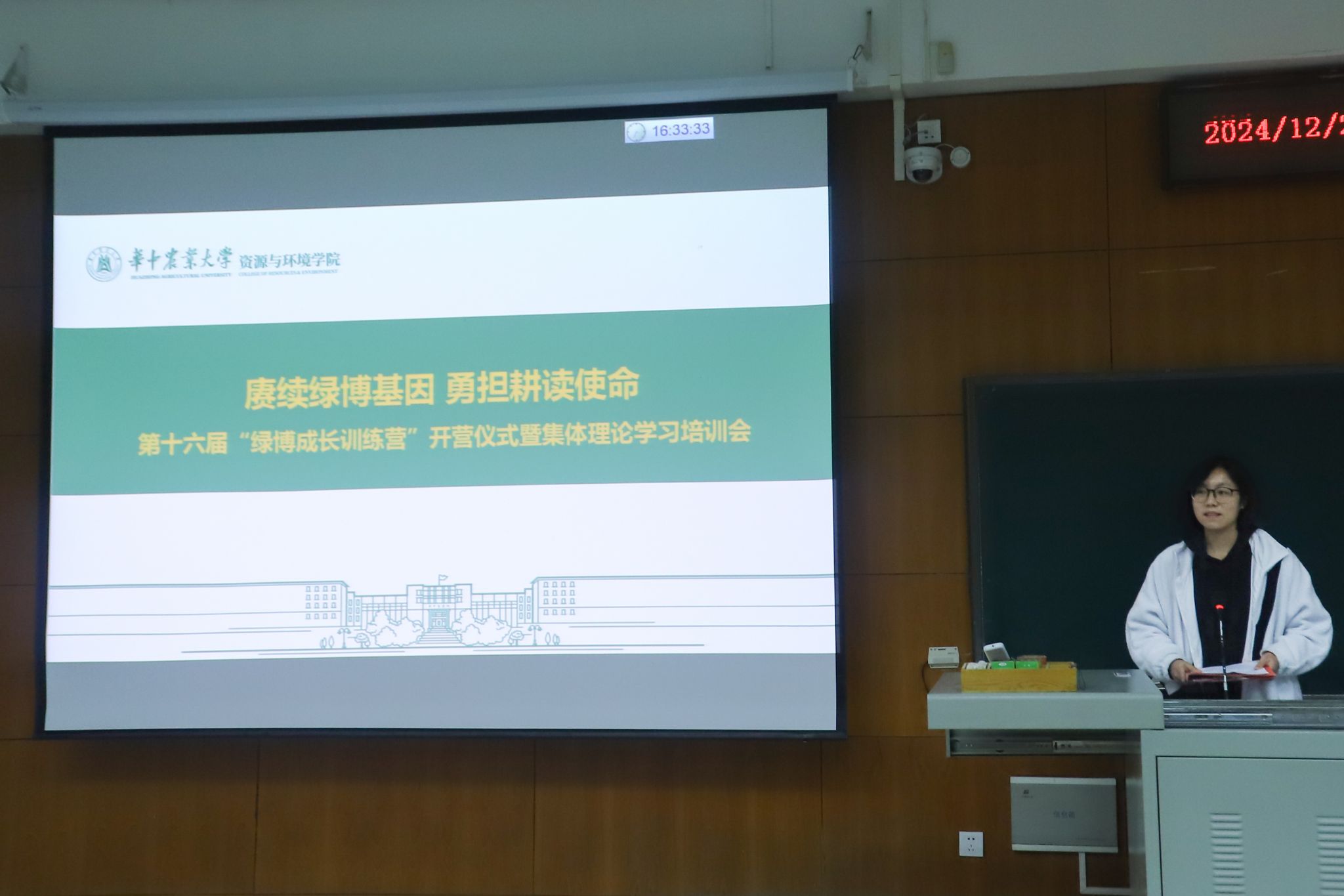 在第三教学楼A105举办了以“赓续绿博基因 勇担耕读使命”为主题的第十六届“绿博成长训练营”开营仪式。学生团委副书记江庆主持会议,学院党委副书记熊海林,本科生辅导员李艳峰、程子豪、徐玲莉、艾力,本科生学生干部等参加学习。