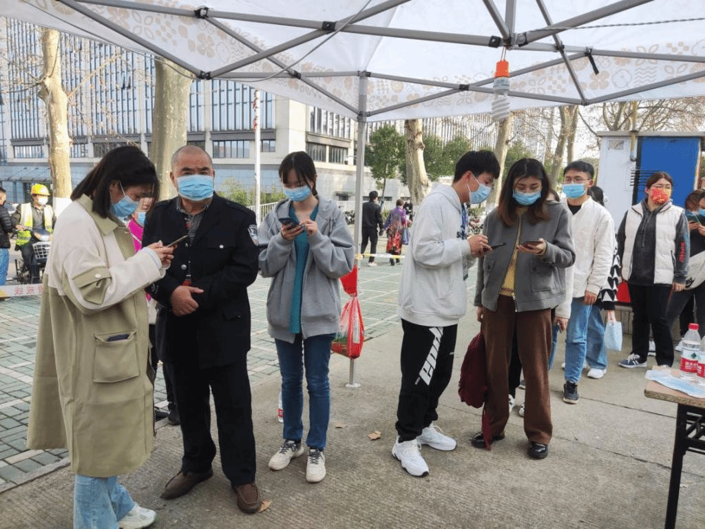 志愿服务过程中,也会遇到各类问题比如遇到行动不便或是没有电子健康码的老年人,志愿者们积极沟通,一一帮助他们完成信息录入,同时不忘加大防疫的宣传,提醒师生、居民戴好口罩,勤洗手,多通风,保持良好的卫生习惯。