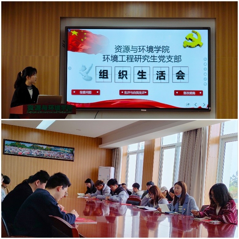 3月23日上午,学院环境工程研究生党支部在主楼315会议室召开3月月主题党日活动暨2021年度组织生活会,全体党员参加会议,支部书记安珈奇主持会议。