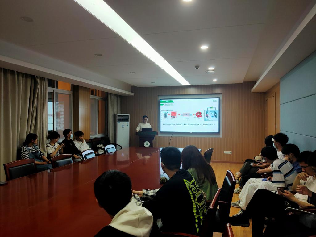报告会上,李勇科首先向同学们详细介绍了电絮凝阴极析氢过程中的反应能垒调控的研究背景,从我国水污染现状讲起,对比了传统水处理技术的局限性,指出电絮凝技术是有效处理复杂废水的新技术。但传统电絮凝技术也存在能耗高等缺点,设计新型阴极材料减小电析氢过电位是有效降低电絮凝技术能耗的方法。