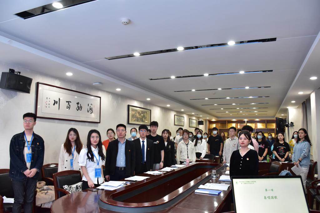 国歌响起,全体起立,大会正式开始。学院2021-2022届研究生会主席团成员高宏杰首先作工作报告,报告回顾过去一年学院研究生会坚持以习近平新时代中国特色社会主义思想为指导,以为同学服务为宗旨,不断加强学生思想引领、筑牢理想信念根基;不断营造浓厚学术氛围、促进学生灵感迸发;不断丰富文化体育生活、展现资环学子风采;始终坚持同学为本、不断强化服务意识所做的各项工作。展望未来,研究生会将在学生思想引领、学院文化建设、自身组织改革等方面不断探索,为成为一个让组织上放心、让同学们满意的学生组织不断奋斗!