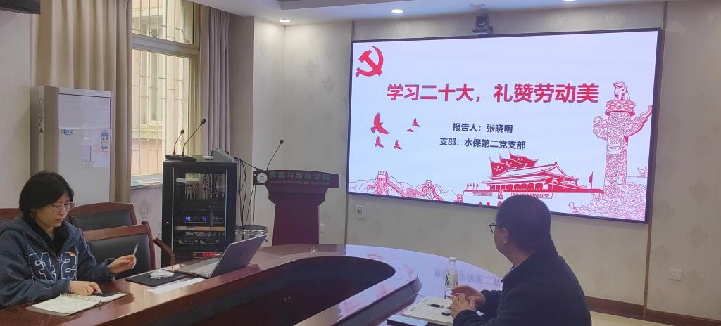 4月28日,nba88看球 水土保持研究生第二党支部于资环楼204会议室开展4月主题党日,支部指导教师张晓明副教授以“学习二十大,礼赞劳动美”为主题,为支部研究生党员讲授专题党课。