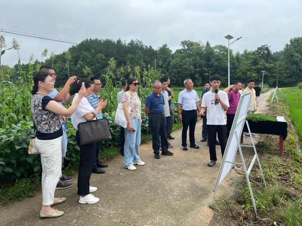 7月22日,植物养分管理研究生党支部指导老师、学院土壤与植物营养系主任李小坤教授带领农业领域的专家与当地种植大户在武穴市梅川镇郭坦村召开“坡耕地红黄壤与中低产田产能提升综合模式构建与示范”的现场观摩会。实践团队成员马世浩博士向与会的专家和农户介绍他正在开展的中低产田地力提升和产能提升研究,他提到:“保障粮食安全就要减少对进口粮食的依赖,提升中低产田地力和产能对保障国家粮食安全具有重要的战略意义,根据现阶段的研究结果看,经过地力与产能提升的田块水稻和油菜都有大幅度增产,比当地农户种植的产量平均增产在10%以上。身为从事农业研究的一员,能为国家粮食增产贡献自己的一份力量,我感到无比的骄傲和自豪。”团队队长熊志豪也向当地农民介绍了富锌大米的营养价值:“锌可以增强人体免疫力,调节身体代谢,同时是人体多种酶的组成成分。在水稻生长过程中添加锌肥,可以通过食用大米补充人体必需的营养元素进而减少对药物的依赖,可以达到一米多用的价值。”将科研成果应用于农业生产并联合当地农技推广服务中心建立示范区,鼓励农民采用新的种植技术改善农业种植模式提高农业生产力是科技小院和团队老师一直在做的事情,只有深入农业生产一线,才能真正的发现农业问题,进而解决问题、帮助农民从而推动农业向前向好发展。