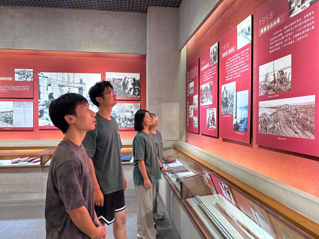 纪念馆内,一件件垦荒物件、一张张留存照片、一幅幅真实场景,展现出一代代青年志愿垦荒队员艰苦卓绝的毅力和坚定不移的信念,诉说着那段气壮山河的历史。“1955年5月,毛主席发表了‘农村是一个广阔天地,在那里是可以大有作为的’指示,团中央向全国青年发出‘到农村去,到边疆去,到祖国最需要的地方去’的号召。1955年8月30日,以北京青年杨华同志为首的第一支青年志愿垦荒队,从团中央第一书记胡耀邦同志手中接过新中国第一面垦荒大旗,以践行‘党有号召、团有行动’的坚强意志,奔赴北大荒——萝北县境内,拉开了中国青年志愿垦荒的帷幕。在他们的带动下,两年内,来自北京、天津、哈尔滨、河北、山东5省市14批共计2602名青年,奔赴黑龙江省萝北县垦荒;上海市98名青年抵达江西省鄱阳湖畔垦荒;温州、台州467名青年分批抵达浙江省大陈岛垦荒”,讲解员张东升带领大家回顾历史脉络,石俊林则介绍展品背后的生动故事,互为补充更好展现垦荒历史。团队成员曾晨威说:“踏上这片土地,看到上千名年轻的垦荒队员毅然选择开垦荒地,我更加深刻地理解了‘信念坚定、艰苦奋斗、团结友爱、无私奉献’的中国青年志愿垦荒精神内涵。这也让我明白,无论时代如何变迁,垦荒精神都是我们青年一代应该继承和发扬的宝贵财富。”