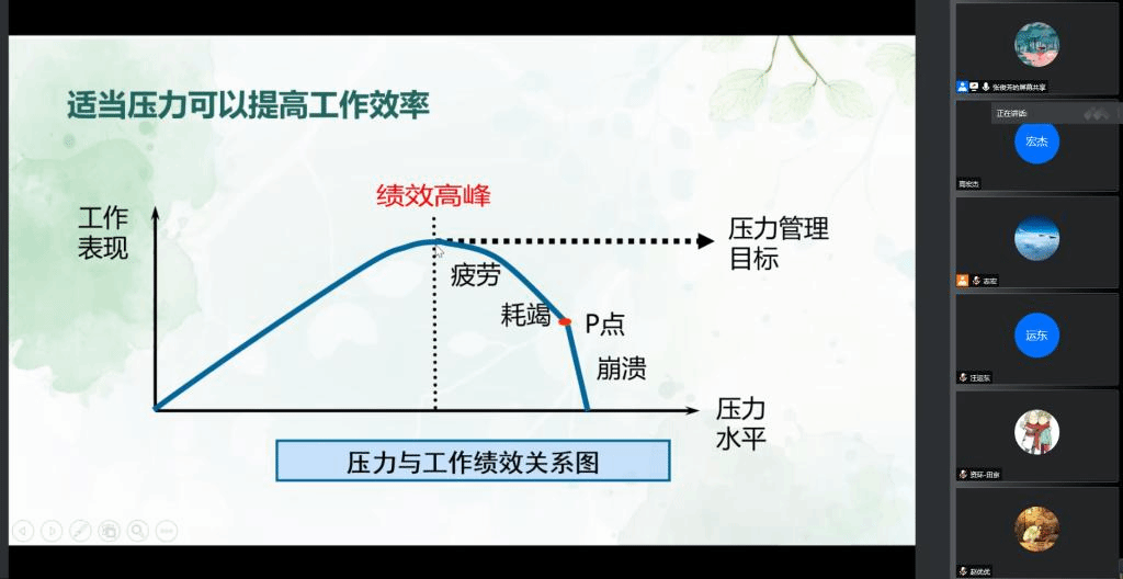 日常管理教育结束后,张俊芳老师围绕研究生自我调适与心理健康与同学们分享交流。她用“三个词语描述入学的感受”作为开场,引导大家进行压力与情绪调节并分享相关技巧。张老师说:“压力事件是客观的,而感受是主观的。压力是一个正常的存在事情,不要抗拒压力,而是去接受、释放。”交流最后,她希望大家繁忙的学习科研之余,务必抽出时间锻炼强健体魄,因为心理健康的重要前提就是身体健康。