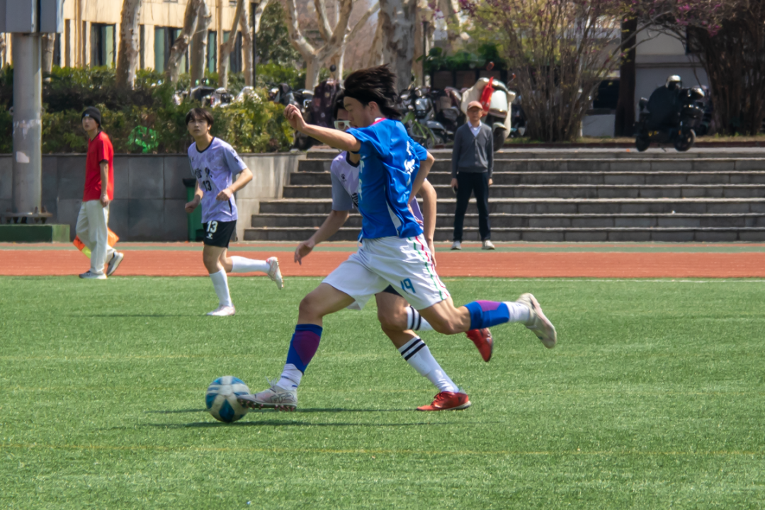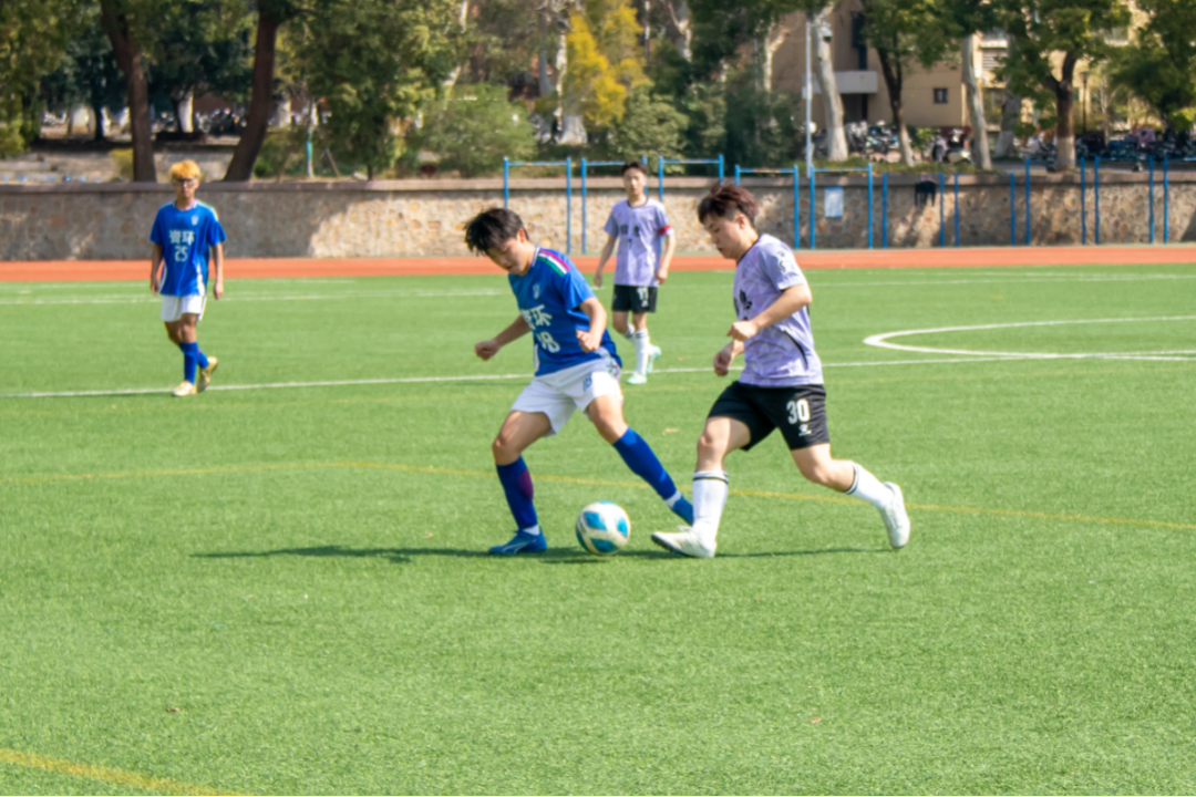 4月2日,我们与实力强劲的生科学院迎来了本届赛事的最终对决。从踏入场地的那一刻起,队员们眼中满是坚定与斗志,为了这场比赛,我们付出了无数汗水,此刻都汇聚成了必胜的信念。比赛中,大一球员赵启睿接到队友精准直塞,巧妙晃过两名防守队员,冷静抽射破门,率先打破僵局,场上气氛瞬间被点燃,大家士气大振。下半场,赵启睿面对生科学院球员的重重防守,他巧妙地利用假动作晃开了防守球员,获得了绝佳的射门机会,再进一球。最终,凭借赵启睿的两个精彩进球,球队以2:0的比分战胜生科学院男足,收获了这场比赛的胜利,最终获得第五名。