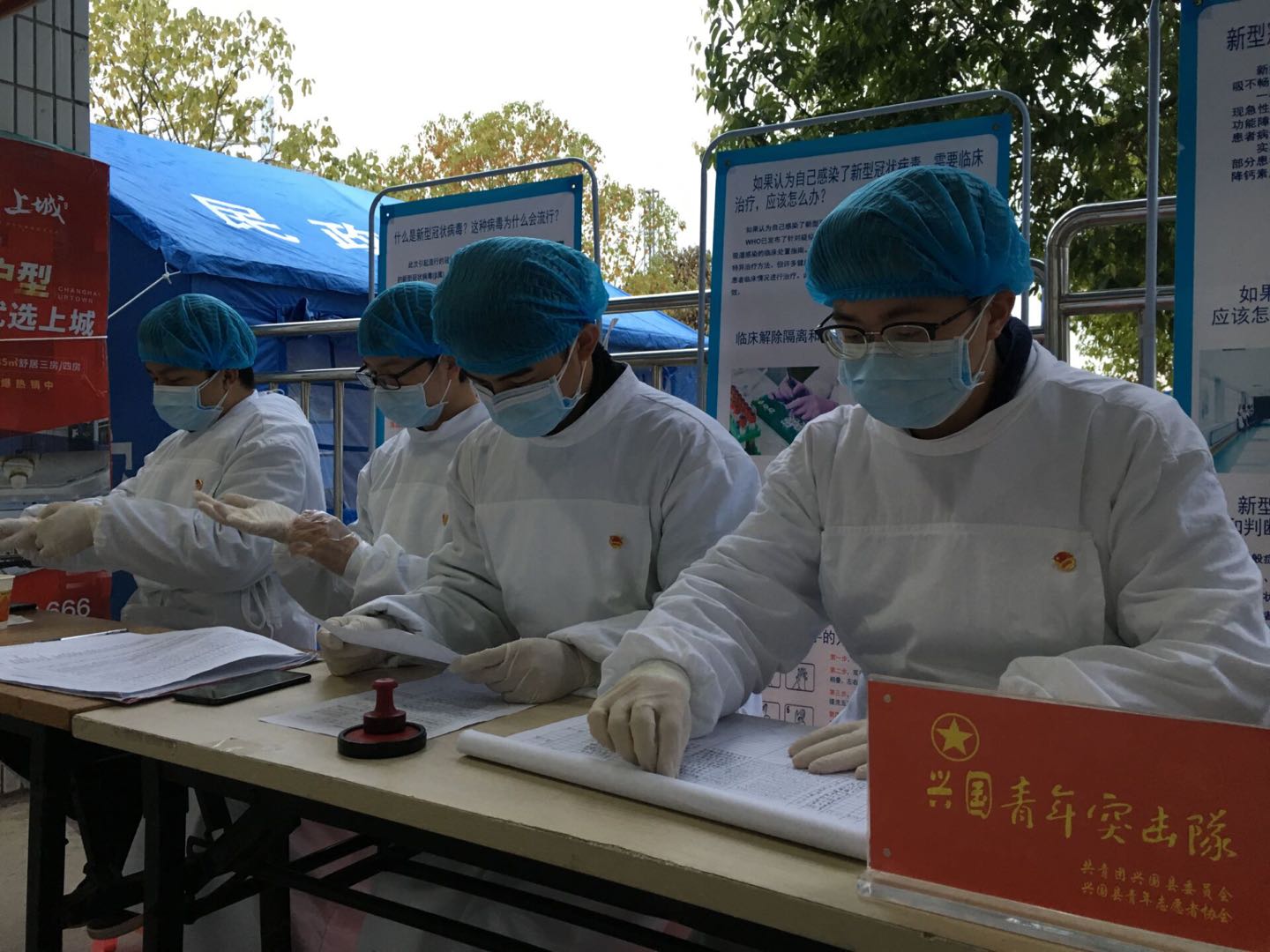 随着各地企业陆续复工,火车站客流量明显增多,这给火车站旅客检测卡口的工作人员增加了不小压力。家在江西省赣州市兴国县的地信1802班吕菁宁了解此情况后,立即向当地共青团组织报名成为抗疫志愿者。经过简单的培训后,吕菁宁开始协助工作人员对旅客进行体温监测,指导旅客扫描二维码填写反赣人员的信息收集表。“有的老人小孩没有智能手机,我们就需要手写记录旅客的基本信息、健康状况、旅程情况等。”他回忆到。