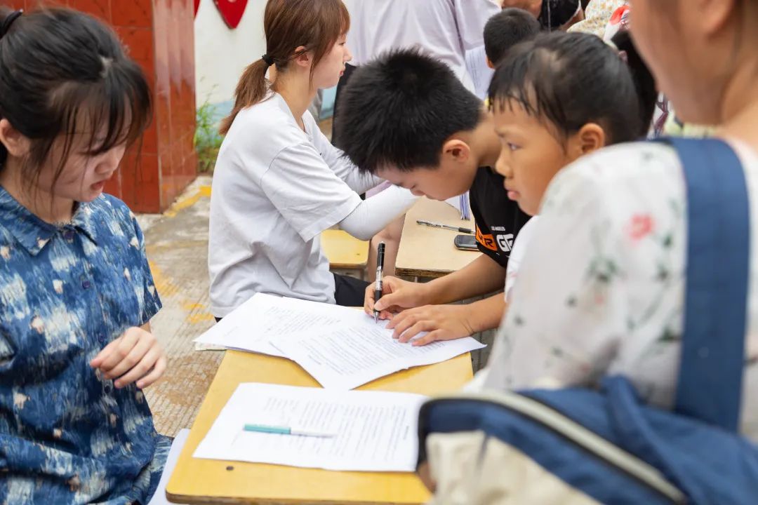 步前小学来了新“客人”的消息不胫而走,村民们纷纷将自己种的西瓜、蔬菜送到学校门口,以表示对“客人”的欢迎。“许多家长并没有因为自己的孩子没选上而心存芥蒂,对我们给予了最大的支持。”黄瑞杰说。扎根红色故土,点燃山村希望。队员李沁荃说,上课第一天,他们发现一名叫洪育坤的同学总是低着头不言语。经过交谈,他们了解到,洪育坤是家里三兄妹的老大,父母在县城务工,家里由爷爷奶奶照看。得知洪育坤的妈妈第二天回家,李沁荃决定做一次家访,她的想法和大家不谋而合。在队员们耐心劝导下,洪育坤的母亲茅塞顿开,表示一定会全力以赴支持孩子学习。几天后,洪育坤变得开朗起来,能够主动举手回答问题了。![]()