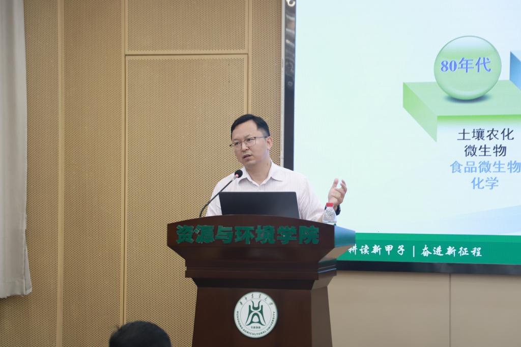 蔡鹏介绍校史院情。我校是中国高等农业教育起点之一,以农业和生命科学相关方面为优势特色,多学科综合发展。他结合了nba88看球 的大致发展过程认为“资环人天生就有创新的基因,永远与时俱进、不断突破创新。”蔡鹏详细介绍了nba88看球 四位获得国家杰出青年基金的老师、课题组文化、多个校内外研究基地、与国内外高校和企业的合作、多种类型奖学金等,多角度、全方位的向同学们呈现一个立体的“nba88看球 ”。“科研让人容光焕发。”蔡鹏说道,“我们要结合nba88看球 特色解决国家重大需求,希望能找到志同道合的同学,一起将我们学院建设成‘特色鲜明的研究型学院’。”