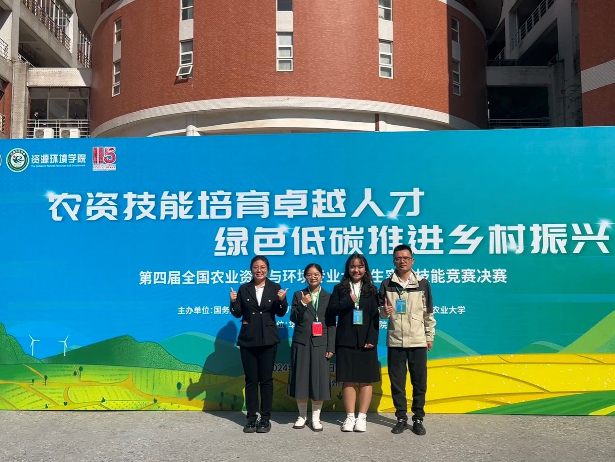 2024年11月29日至12月1日,由国务院学位委员会第八届农业资源与环境学科评议组主办的“第四届农业资源与环境专业大学生实践技能竞赛”决赛在华南农业大学成功举行。本次大赛吸引了来自全国35所院校的248支队伍,近800名同学参赛。nba88看球 共有9支队伍参加了本次技能大赛初赛,最终刘新伟老师指导的2022级本科生陈然、夏黑旦木·比拉勒丁、李佳怡3位同学组成的团队入围决赛,与来自全国 25 家单位的30支参赛队伍同场竞争,经过激烈角逐,斩获大赛特等奖。