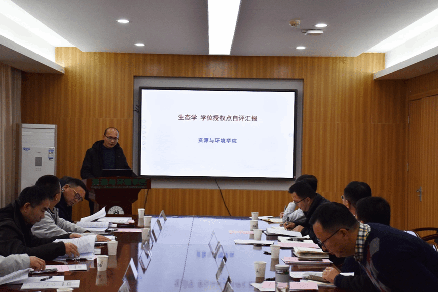 蔡鹏、王军光、邱国红分别就“农业资源与环境学位授权点自评估”、“生态学学位授权点自评估”以及“环境科学与工程学位授权点自评估”进行了汇报。专家组认真听取学位点情况报告,并审阅了相关材料,进行了质询。