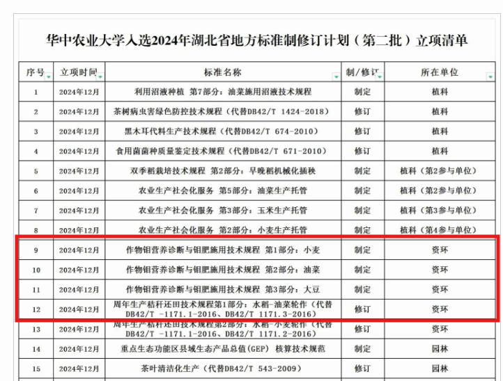 2月12日,湖北省市场监督管理局发布2024年湖北省地方标准制修订项目计划(第二批)立项通知,我校作为牵头单位组织申报50项,获立项批准23项,作为参与单位获立项批准15项,其中,nba88看球 5个项目位列其中。