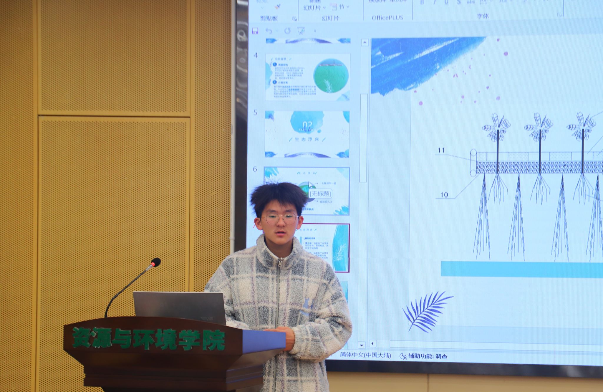 赛事现场,蔡建波宣布竞赛开始,15支参赛队伍依次上台答辩,5位评委对各支队伍的汇报进行了各方面的提问并予以评价和建议。答辩过程中,各支队伍依据经济效益、作用效率、实际可行性等方面提出了合理有效的计划方案。