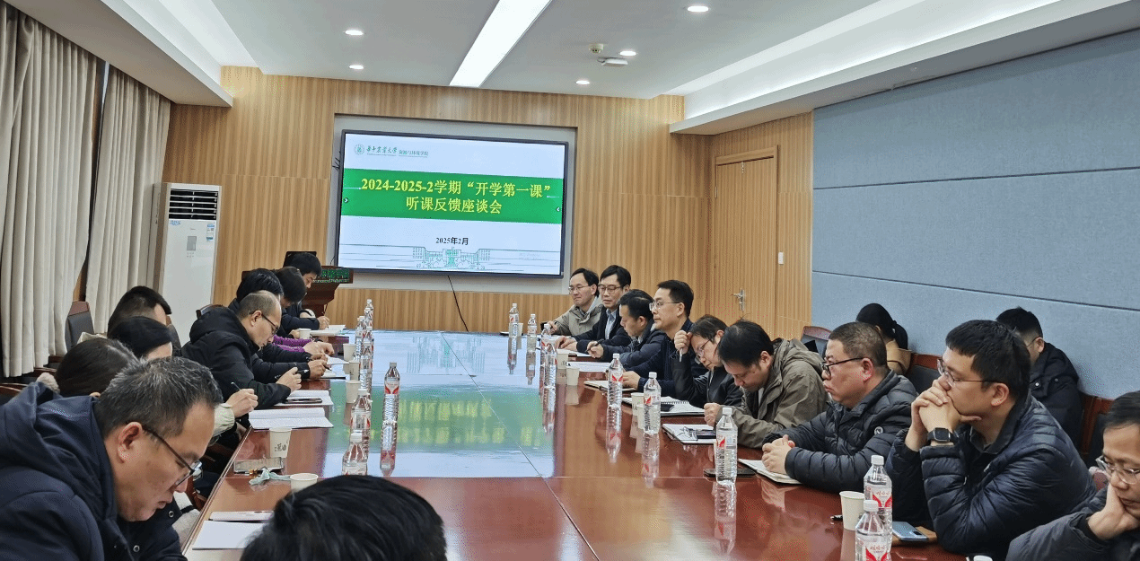 2月17日下午,nba88看球 在主楼315会议室召开了2025年春季学期“开学第一课”听课反馈座谈会,此次听课涉及学院11位老师讲授的9个本科生课堂和2个研究生课堂。校党委常委、副校长郭刚奇、部分职能部门领导干部、本科教学巡视员、院领导班子、各系专业负责人、教学团队负责人、青年教师及授课老师等28人参加座谈会,会议由nba88看球 党委副书记熊海林主持。