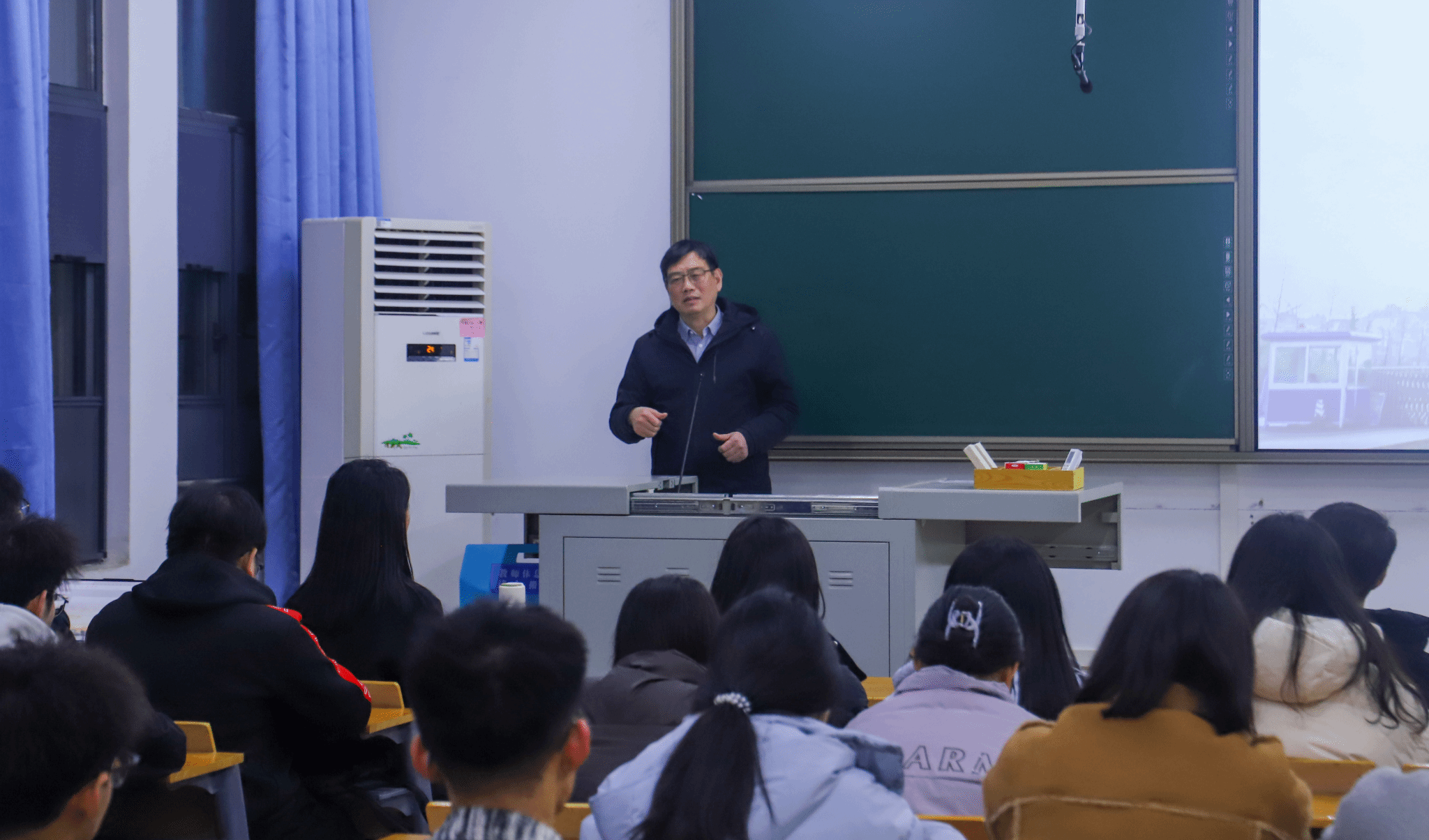 2月16日晚,nba88看球 各年级于第四教学楼、第三教学楼和主楼召开各年级开学收心班会。校党委常委、副校长郭刚奇、学院党委书记吕守华、院长谭文峰等老师深入各班级,与返校学子展开面对面交流,从思想引领、学业规划等方面和同学们交心谈心。