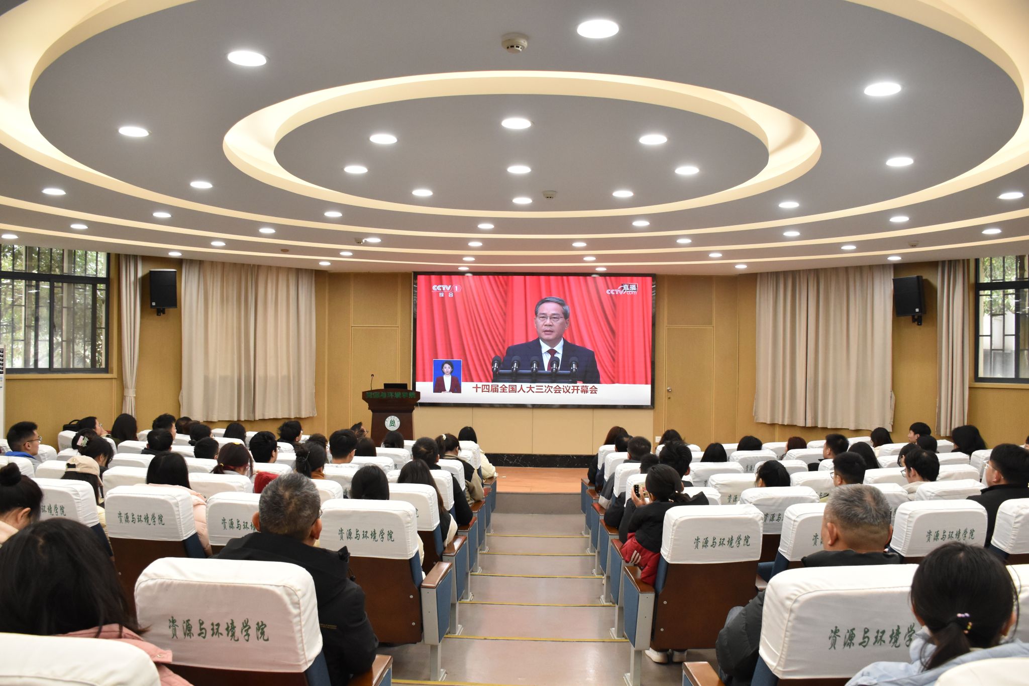 3月5日上午,十四届全国人大三次会议在北京开幕,国务院总理李强向大会作政府工作报告,nba88看球 师生通过线上线下多渠道收听收看开幕会议。学院班子成员、教工党支部书记、行政实验人员和学生代表等在西附楼报告厅集中收看。