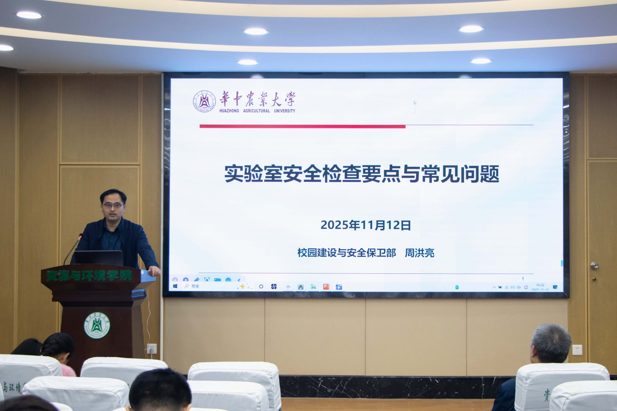 周洪亮结合习近平总书记关于安全工作的重要指示精神,系统解读了教育部近年来出台的实验室安全管理系列文件,强调要严格落实实验室分级分类管理、追责问责等制度要求,切实提高实验室安全管理的针对性和有效性。针对实验室常见安全隐患,他从场所安全设施、电气安全、化学安全、气瓶安全、特种设备使用等方面,结合真实案例详细讲解了规范操作流程和注意事项,提醒师生“人人都是自身安全第一责任人”。