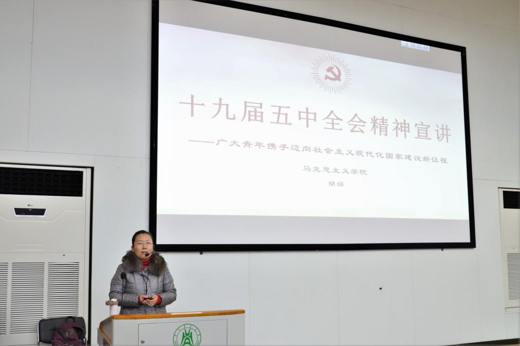 为深入学习贯彻党的十九届五中全会精神,12月10日,nba88看球 邀请马克思主义学院胡娟老师在第三教学楼咸宁报告厅为师生党员做专题辅导报告。