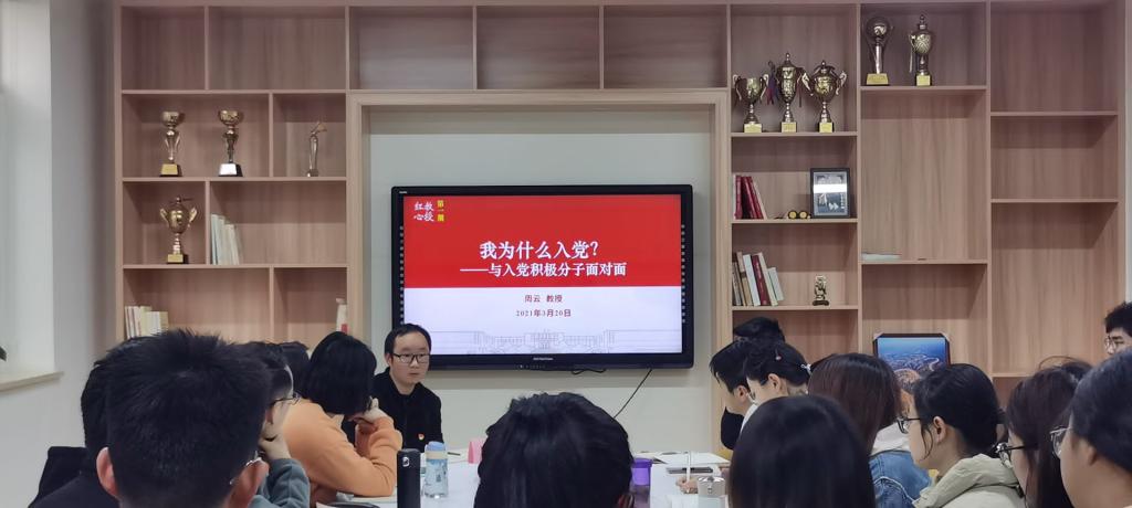 3月20日上午,由nba88看球 大学生党总支主办的“教授红心工作室”第一期在主楼240举行,周云教授应邀与本科生、研究生入党积极分子40余人围绕初心使命、入党动机等话题展开讨论交流,帮助大家坚定理想信仰,明确努力方向,争取早日入党。辅导员胡志宏主持交流会。