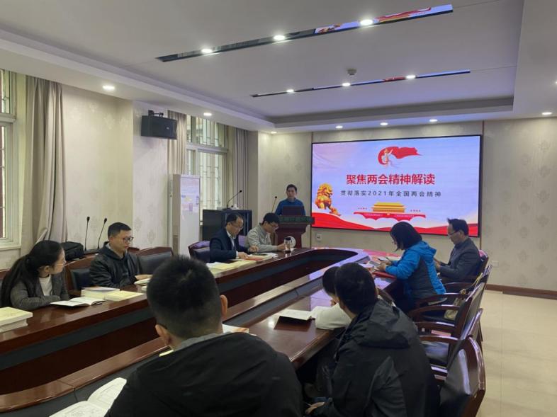 随后朱俊同志为大家进行了两会精神的解读学习,对政府工作报告透露的八大信号进行总结,并介绍了我国2021年要办的五十件大事。朱俊同志在对2020政府工作回顾、“十三五”时期发展成就及2021年重点工作等两会重点内容进行了汇总后谈到,我国未来许多大事与我们专业领域息息相关,鼓励支部同志在学习工作中聚焦国家需求,做出更大贡献。