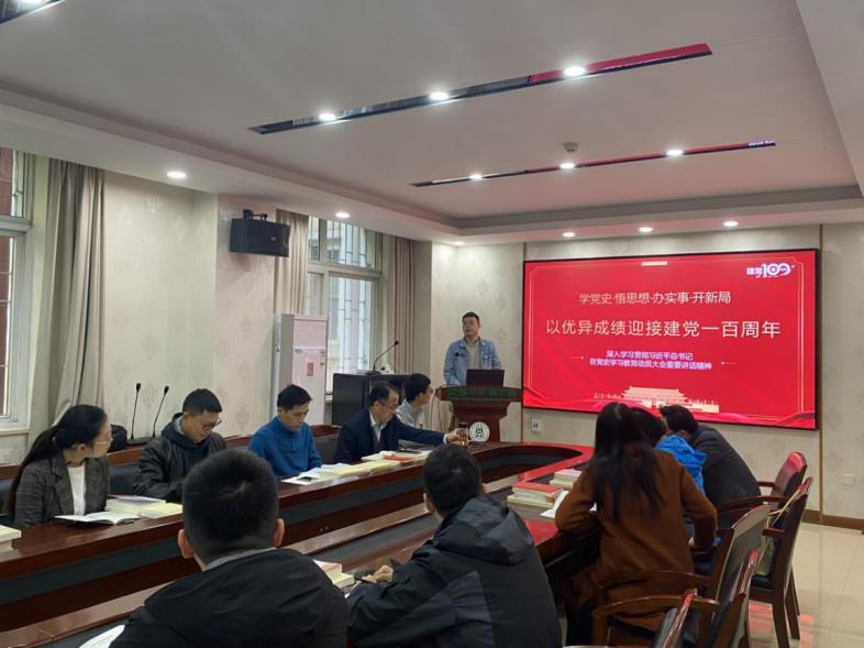 随后,黄丽同志带领大家重温入党誓词,庄严宣誓。接着研究生党支部方宇同志以“以优异成绩迎接建党一百周年”为主题,带领大家进行党史学习,回顾和总结了建党一百年来党的发展历史和宝贵经验,深入贯彻了习近平总书记在党史学习教育动员大会上的重要讲话精神。并集体学习了《关于在全党党史学习教育的通知》。方宇同志表示,现在正处于建党百年这个重要历史节点上,学习回顾党的发展历程与历史经验是正当其时、十分必要的,我们应弘扬发展党的光荣传统,在新时代的新阶段做出更大作为。