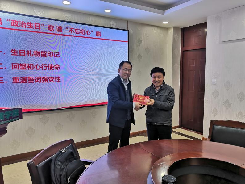 会议伊始,支部为胡红青、黄丽、黄传琴三位老师集体过政治生日,戴珂指出,对于普通人而言生日只有一个,就是出生的那天;而对于中国共产党党员来说,却有着两个生日,除了出生日之外,另一个特殊的生日就是“政治生日”。当党员在鲜红的党旗下郑重宣誓“我志愿加入中国共产党”,便意味着作出了坚定信仰共产主义的政治抉择,作出了将自己的一切交给党的庄严承诺。这样一个人生的重要时刻,理应被深深铭记。希望过“政治生日”的三位同志,在今后的工作和生活中,牢记入党誓词,时刻以党员标准严格要求自己,真正做到不忘初心、牢记使命,永葆共产党员的先进本色。