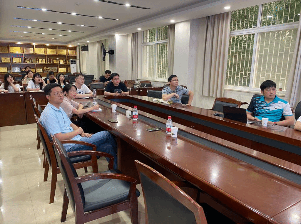 报告结束后,与会老师针对报告中关于锰离子在生物膜形成和防治病害中发挥的重要作用进行了深入讨论,刘俊提出了土传病菌为什么传播速度快的问题。蔡鹏就具体的,肥菌的加工方法,大田操作的技巧普及等问题让喻国辉做了更深一步的介绍。在场的其他青年教师也就自己的研究领域与农学学科的研究提出了一系列想法。