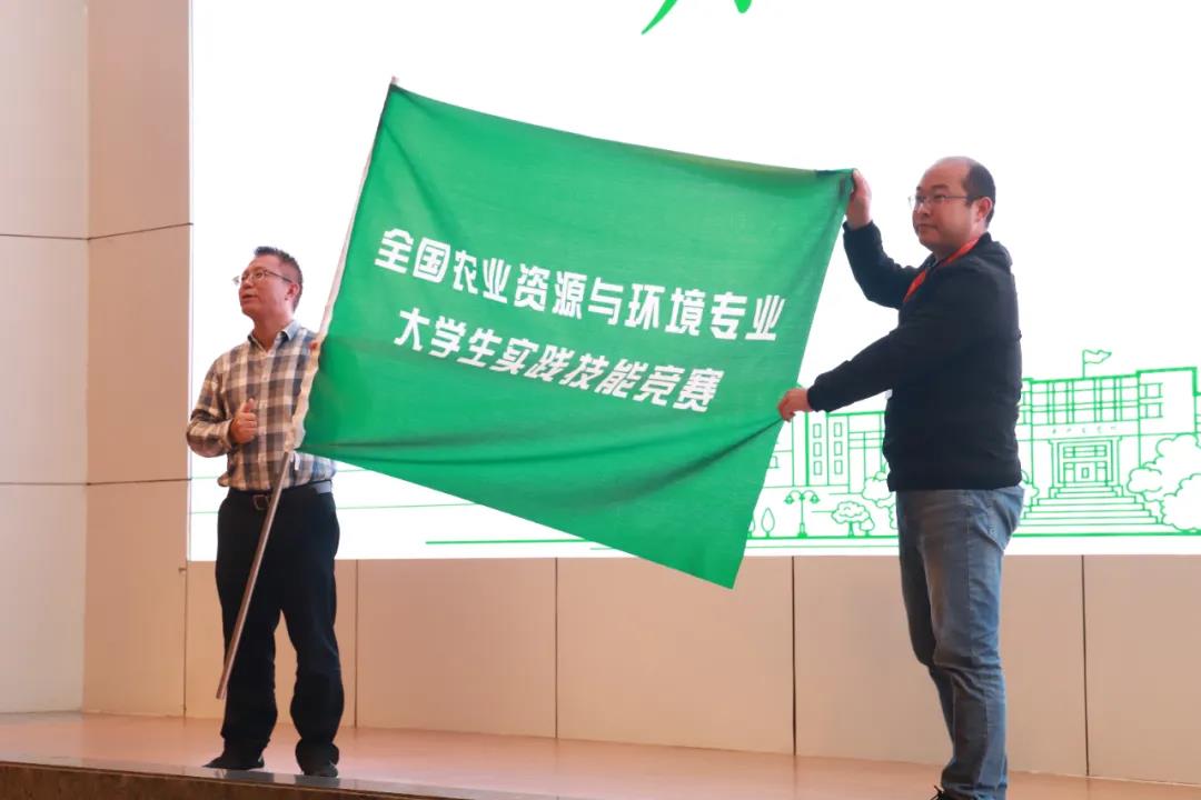 国务院学位委员会第八届农业资源与环境学科评议组秘书长邹建文宣布全国第二届农业资源与环境专业大学生实践技能竞赛承办单位为山西农业大学。nba88看球 副院长石磊与山西农业大学nba88看球 院长刘奋武进行旗帜交接仪式。紧接着,刘奋武代表第二届承办单位发言,他说道:“本次比赛展现了在全面推进乡村振兴、加快农业农村现代化建设的进程中资环学子所承担的历史重任和展现出的良好风貌,本次竞赛必将成为农业资源与环境专业本科人才培养质量提升的助推器。希望通过承办第二届农业资源与环境专业大学生实践技能竞赛为农业资源与环境专业师生搭建下一个交流平台,热切盼望和各院校的师生齐聚山西太原,期待我们在山西农业大学再次相见!”