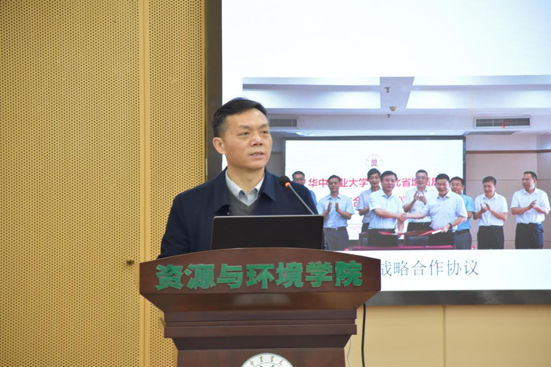 院长谭文峰首先对学院2021年度工作进行总结汇报,他从党建与思政工作、本科人才培养、学位与研究生教育、科技工作、学科建设、社会服务、国际合作与交流、人事人才工作、离退休与群团工作、文化建设与文明培育、平安绿色校园建设、校友工作、改革创新工作等方面进行报告。谭文峰谈到,在全院教职工的共同努力下,各项工作全面推进,众多项目取得突破,4名青年老师入选省部级人才项目,实施青年教师“绿苗计划”,举办31期青年教师交流与发展论坛,立项支持3个团队建设;平台与基地建设捷报频传,获批“农业农村部耕地质量标准化验室”与CMA通过现场评审,完成教育部咸宁贺胜桥野外观测站升级改造,国家农业科学咸宁观测实验站通过答辩;获批科研经费近1.2亿元。
