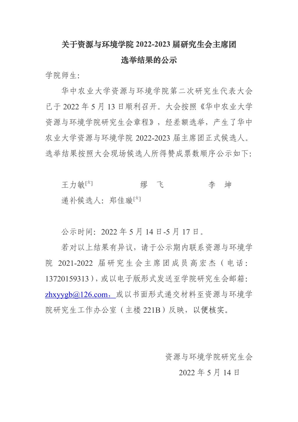 关于nba88看球 2022-2023届研究生会主席团选举结果的公示