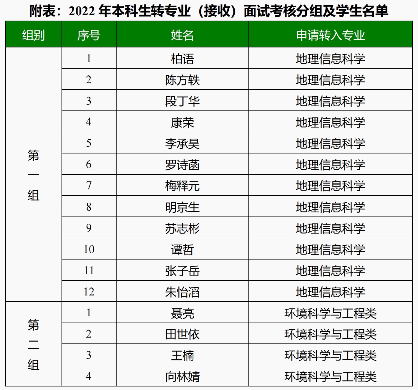 第一组(申请转入地理信息科学):2022年12月27日(周二)下午14:30